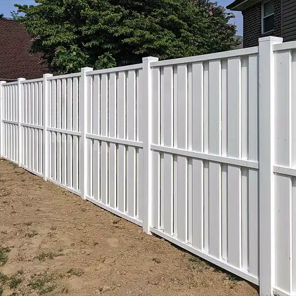 Vinyl rails run horizontally along the top and bottom of the fence. These components distribute weight evenly across the fence, ensuring long-term performance without sagging or bending.